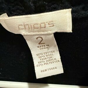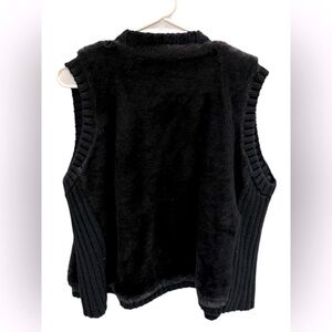 Chico’s Womens Sweater Vest Black Wool Blend Faux Fur Open Front Size Medium
