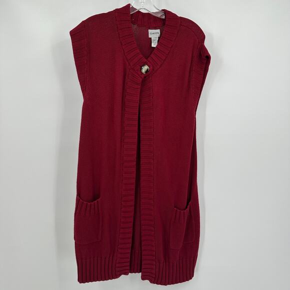 Chicos Womens Sweater Vest Size 1 US M Sleeveless Knit Red Layering Pocket Cozy