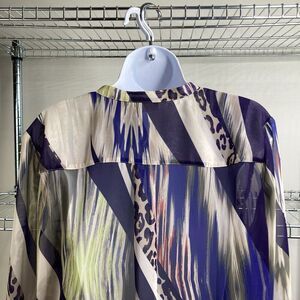 Chico's Women's Animal Swirls Apryl Shirt Size 1/M Semi-Sheer Hi-Low Flowey Top