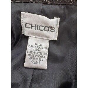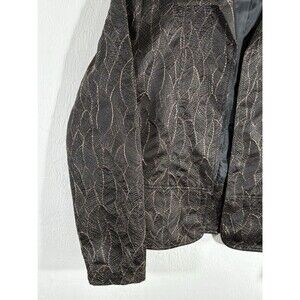 Chicos Womens Sz 1 (US 8-10) Brown Gold Leaf Textured Embroidered Lined Blazer Jacket