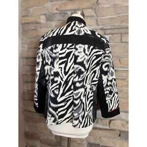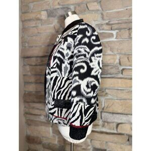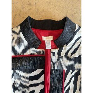 Chicos Womens Sz 2 Animal Print Jacket/Blazer Metallic Shimmery Black Red White