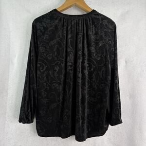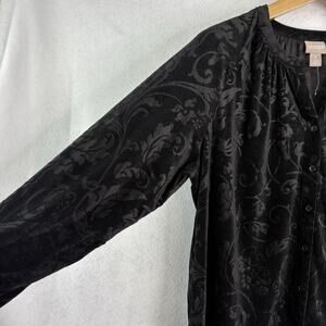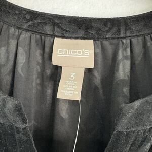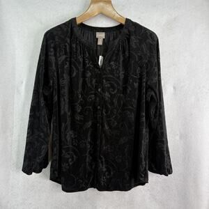 Chicos Women’s Sz 3 (XL) Black Button Up Embossed Velvet Floral Boho Top Witchy