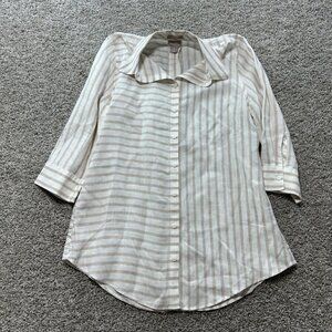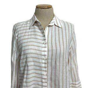 Chico's Womens Sz 4/6 No-Iron 100%Linen Striped Side-Button Tunic