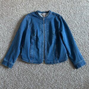 Chicos Womens Sz Medium Denim Jacket With Zip Closure Cotton Blend Blue