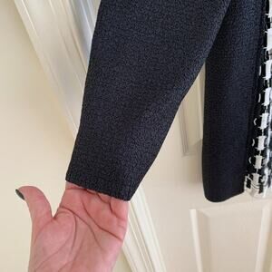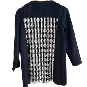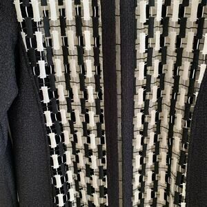 Chico's Womens Sz S Black White Basket Weave Open Front Longer Jacket