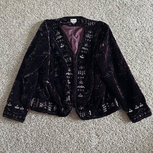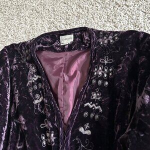 Chicos Women's Sz XL Velvet Embroidered Open Front Jacket Purple