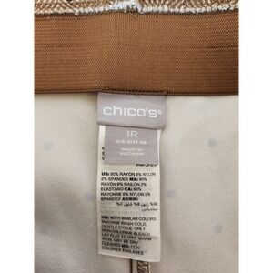 Chico's Women's Tan Tweed Polka Dot Pull On Elastic Waist Straight Leg Dress Pants Size 8R