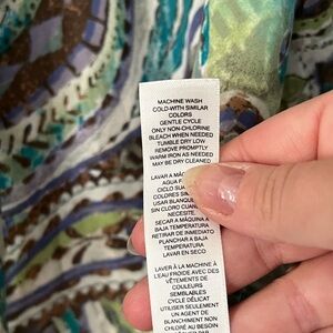 Chico's Women's Taupe Green Turquoise Paisley Lace Up Tie Neck Blouse Top