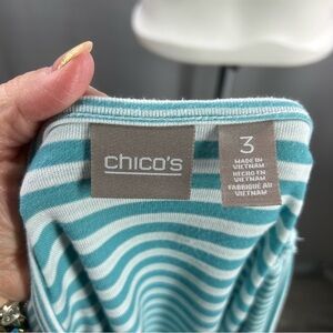 Chico's Women's Teal Striped 3/4 Sleeve Top