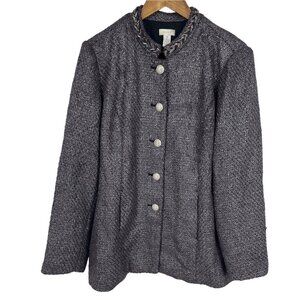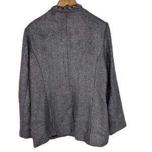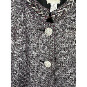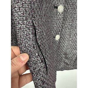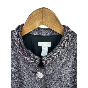 Chicos Women’s Textured Purple Knit Button Front Painted Silver Jacket Size 2 L