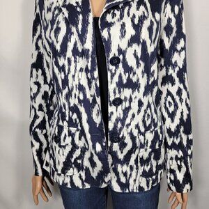 Chico's Women's Three Button Cotton Light Weight Navy/White Blazer Size 1 (8/10)