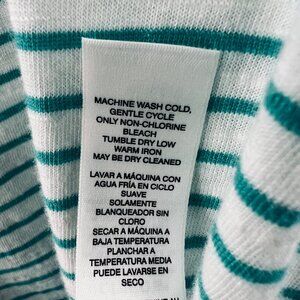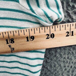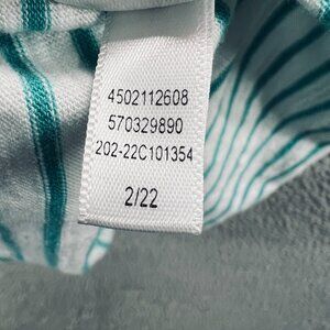 Chicos Womens Top 2 Large Green White Striped Tie Front Short Sleeve Casual