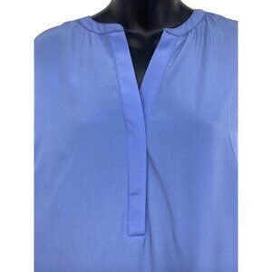 Elevate your wardrobe with this Chico's sleeveless blouse, crafted from 100% polyester for a smooth and polished look. Its vibrant blue color with a sheen to the fabric and relaxed fit make it an ideal choice for professional settings, offering both comfort and style.
