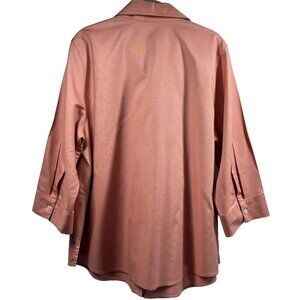 Chicos Women's Top Blouse Size Large Salmon Button UP 3/4 Sleeve 100% Cotton