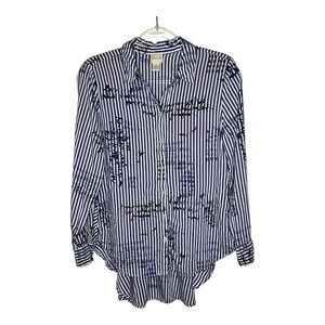 Chicos Womens Top Blue Stripe Graphic Print Hi Low Peplum Size Medium 1 Blouse