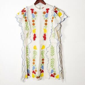 Chico’s Women’s Top Garden Girl Floral Stripe Beaded Embroidery Button Up Size L