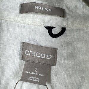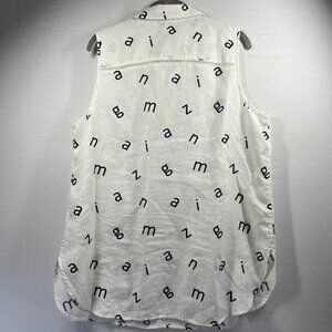 Chicos Women's Top L Black White 100% Linen Sleeveless Blouse Pullover Teacher