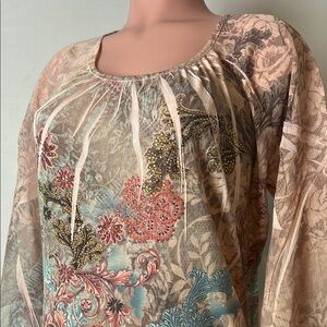 Chicos Women’s Top Shirt Tie Dye Embellished L3/4 Bell Sleeve Size 2(Large)