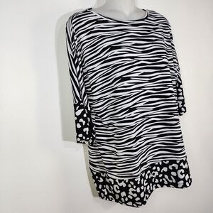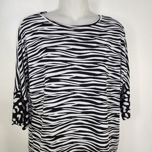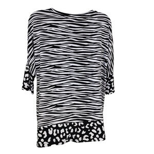Chico's Womens Top Size 0 Small Black White Animal Pattern 3/4 Sleeve Contrast