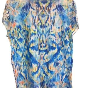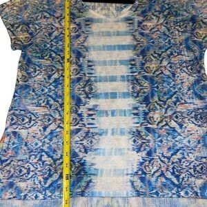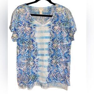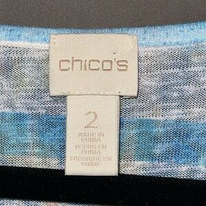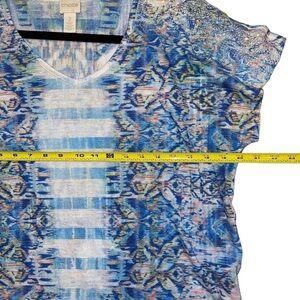Chicos Women's Top Size 2 (L 12) Blue Short Sleeve ICat Design Pullover