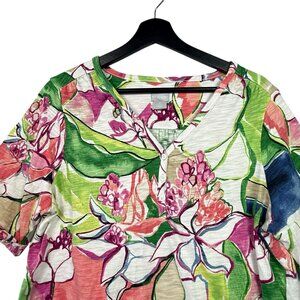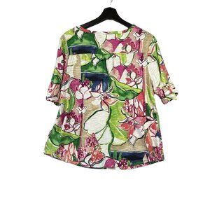 Chicos Women's Top Size 2 / US Large Colorful Pullover Floral Cotton Blend