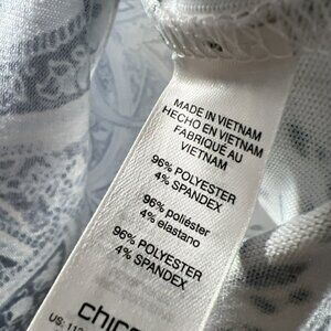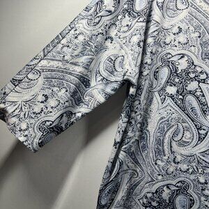 Chicos Women's Top Size Large Blue Brown Leopard Paisley 3/4 Sleeve Pullover
