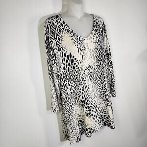 Chico's Women's Top Size XL Animal Print Sharkbite 3/4 Sleeve Pullover V Neck