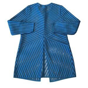 Chico's Women's Travelers Collection Pattern Strip Jacket Mercer Blue Size M/8