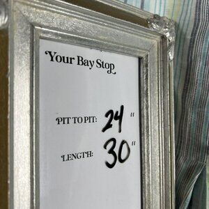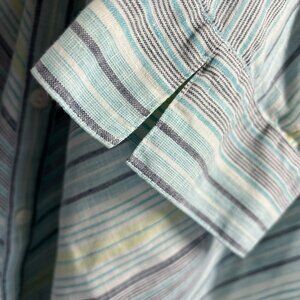 Chico's Women's Tunic Blouse Size Large Linen Blue Green Stripe 100% No Iron 3/4