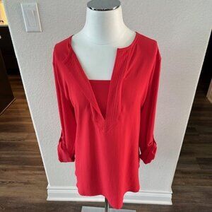 Chico's Women's Tunic Size 2 NWT Red/zinnia with detailing at the neckline Light, airy - summer wear