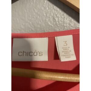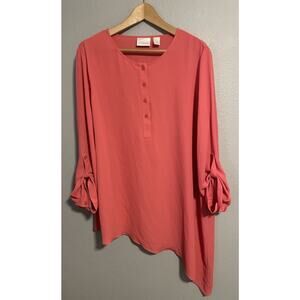 Chicos Womens Tunic Size 3 US XL Pink Chiffon Asymmetric Roll Tab Sleeve Modern