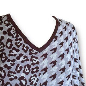 Chico's Brown Animal Print and Houndstooth Tunic Sweater