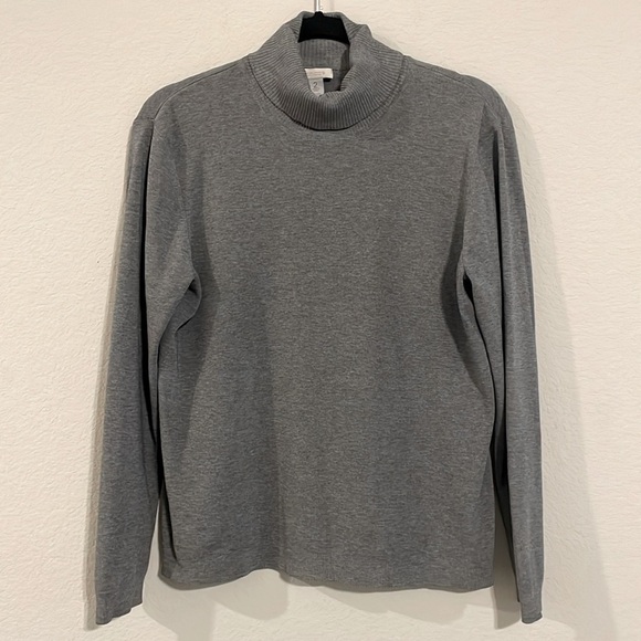 Chico's Women’s Turtleneck Sweater Large Grey Silk Blend Ashlan Basic Classic