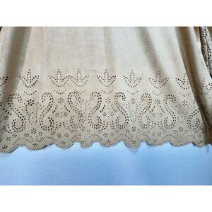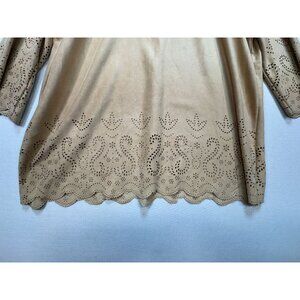 Chico's Women's V Neck Tunic Top Long Sleeve Stretch Faux Suede Paisley Sz 3 Tan