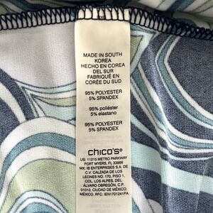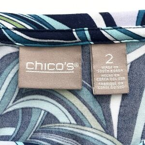 Chicos Women's V-Neck Top Size 2 (L-12) Blue Green Geometric Floral Swirl S/S