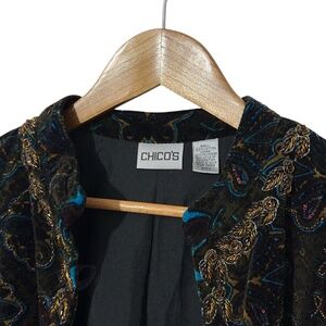 Chicos Womens Velvet Jacket Size 2 (M) with Beaded Trim Evening Dinner