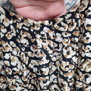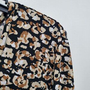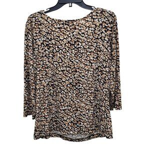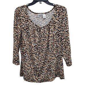 Chico's Women's Vintage Brown Tan Neutral Abstract LS Top USA Made Size 2 (L/12)
