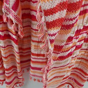Chicos Womens Wave Tassel Cardigan Sweater Orange Pink Stripe Chicos 1=Medium
