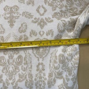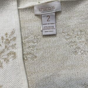 Tags chicos white gold metallic duster, open front long cardigan, size 2 large l, lightweight layering piece, transitional fashion, elegant shimmer jacket, evening cover-up, chic metallic sweater, holiday party outfit, timeless wardrobe staple, dressy lightweight duster, boho glam fashion, sophisticated layering essential, neutral statement piece, gold accent cardigan, resort wear styling, luxe metallic knit, effortless elegance, versatile fashion must-have, classic open front coat, special occasion outerwear