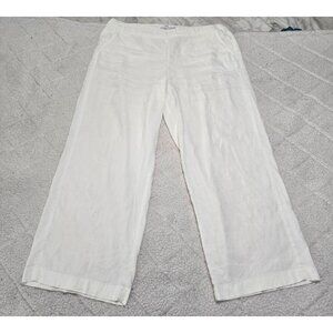 Chicos Womens White Pull On Pants Wide Leg Slash Pockets Linen Blend Size 16R