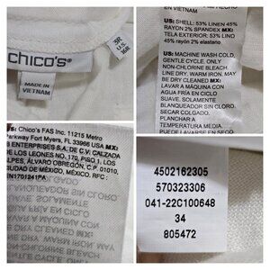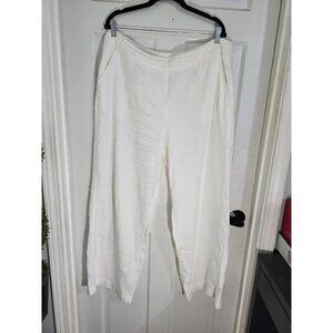 Chicos Women's White Pull On Pants Wide Leg Slash Pockets Linen Blend Size 16R