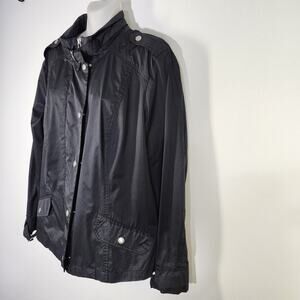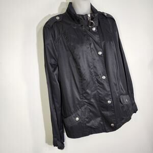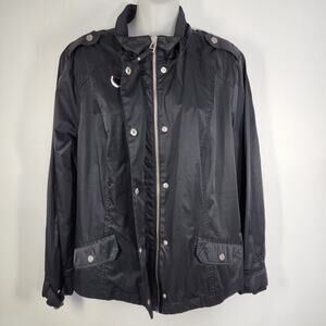 Chico's Womens Windbreaker Jacket Zip Snap Closure Lightweight Silver Hardware L