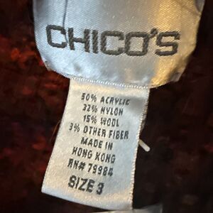 The Chico's cardigan multicolor duster sweater is a stylish and versatile addition to any woman's wardrobe. Made from a wool blend material with a tight-knit design, this oversized sweater features long sleeves, a V-neckline, and a raglan sleeve style. The multicolor eyelash knit adds a touch of bohemian flair, perfect for various occasions including travel, casual outings, parties, and even business settings. This cardigan by Chico's is designed for a regular fit and is sure to add a pop of color and style to your outfit during the fall and spring seasons.