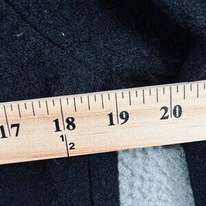 Elevate your wardrobe with this Chico's women's wool jacket in size Large, designed in a sleek black hue with military-inspired structure. The minimalist tailoring and clean lines create a polished silhouette that works beautifully for both casual and dressy outfits. This piece offers timeless outerwear styling with structured details that add sophistication to any look.