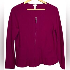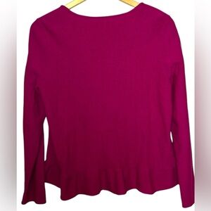 Chico’s Women’s Wool Ruffle Hem Renee Cardigan Zip Sweater Pockets Magenta Pink
