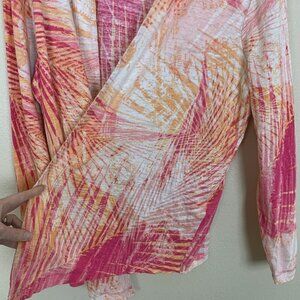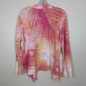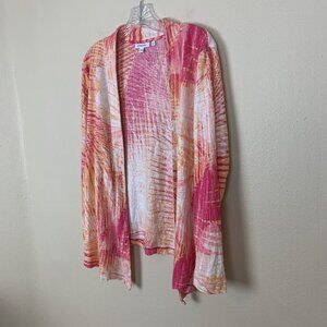 Chicos Womens XL 3 100% Linen Cardigan Sweater Open Front Knit Pink Orange Beach