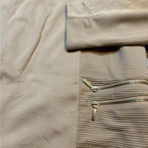 Chic and versatile Chico’s women’s blazer in size 4 (XXL). Designed in a neutral tan with an open-front, lightweight unstructured fit, and stylish gold zipper pocket accents. Perfect for work, travel, or layering casually. VGUC with minimal wear.