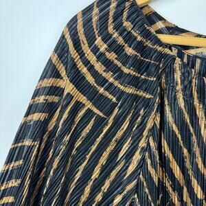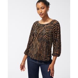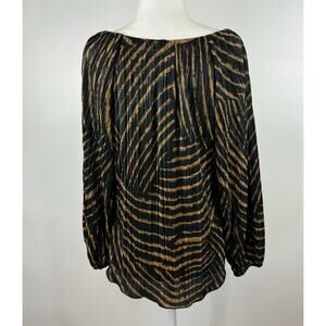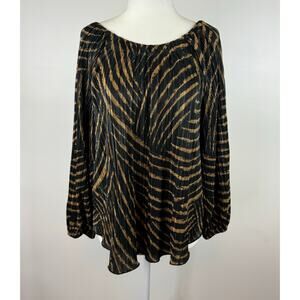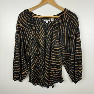 Chicos Womens Zebra Print Metallic Crinkle Top Sz 1 (M) Minimalist Neutral Flowy