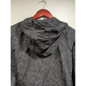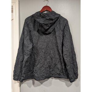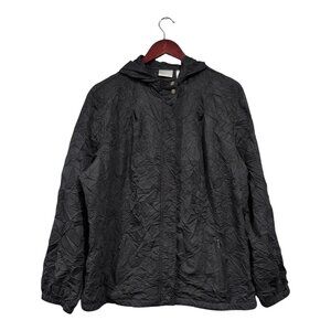 Chicos Womens Zenergy Hooded Jacket Black Full Zip Pockets Crinkle Fabric 3 (XL). Please note the jacket is a size 3 which is equivalent to a size 16, XL. All measurements are approximate.