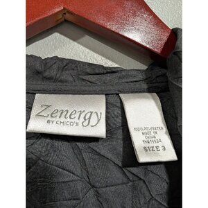 Chicos Womens Zenergy Hooded Jacket Black Full Zip Pockets Crinkle Fabric 3 (XL)